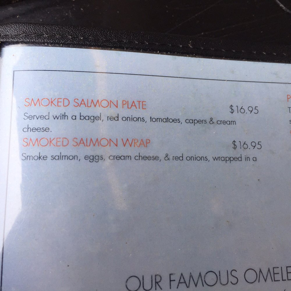 Served with a bagel, red onions, tomatoes, capers and cream cheese.